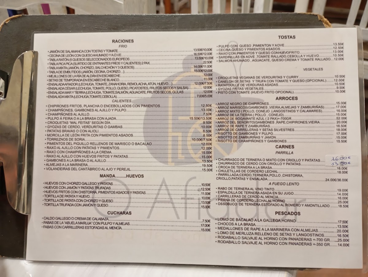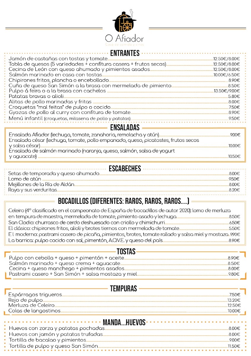 Restaurante O Afiador Menu